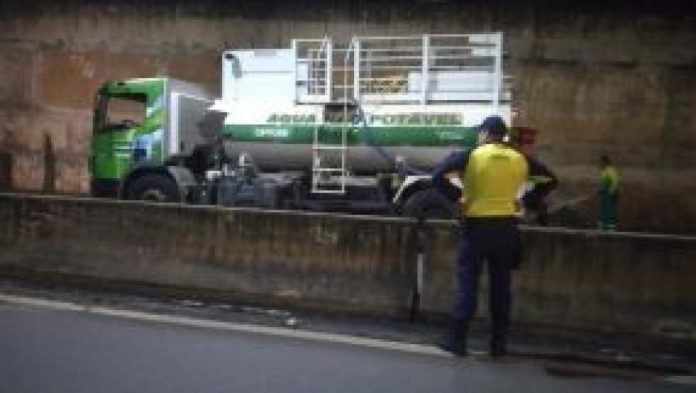 O trabalho foi realizado, após alagamentos no local, devido à forte chuva desta tarde. Uma caminhonete ficou ilhada e o motorista foi resgatado pelo Corpo de Bombeiros.